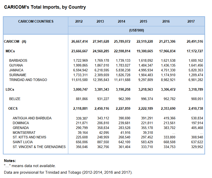 Trade Database (TradSys): http://caricomstats.info/tradsysonline/Home.aspx