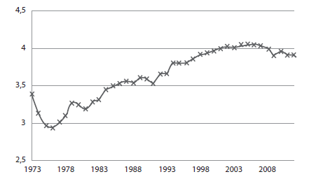 Maximum GDP per capita gap, CARICOM countries. 1973-2012